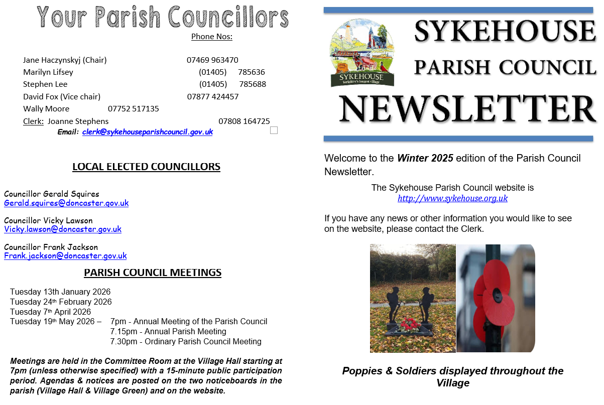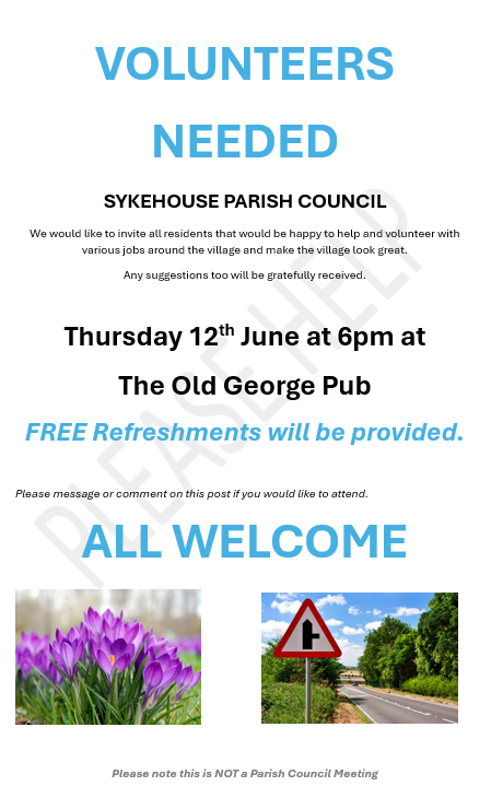Welcome to the Sykehouse Parish Council News Page. Local information, news and events will be posted. Please get in touch if you have any suggestions.